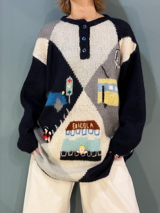○mohair knit sweater / made in Italy ○実寸サイズ 肩幅 56 袖丈 47 身幅 55 着丈 70 ※平置き㎝での採寸です。 多少の誤差はご了承ください。 ○ブランド  ○カラー  ○素材 50% モヘア     30% ポリアミド     20% アクリル ○商品説明 バスや車、可愛いらしいお人形も二人いて ポップな雰囲気ですが ベースの色味が落ち着いてるので ぜひ素敵な大人の方にあえて着てほしいな〜と モヘアで軽くて暖かいので そちらもおすすめポイントです! ○状態 綺麗です ○着用モデル:156㎝ ○古着の特性上、わずかな汚れやシミ等による返品、返金、交換は出来かねます。 また、サイズやイメージが違う等のお客様都合による返品、返金、交換も応じ兼ねます。 ○ダメージ、目立つシミなどある商品は写真を添えて掲載いたします。 ○商品の詳細など、気になる点ございましたらメッセージ又はインスタグラムDMよりお受けしておりますので お気軽にお問い合わせくださいませ。