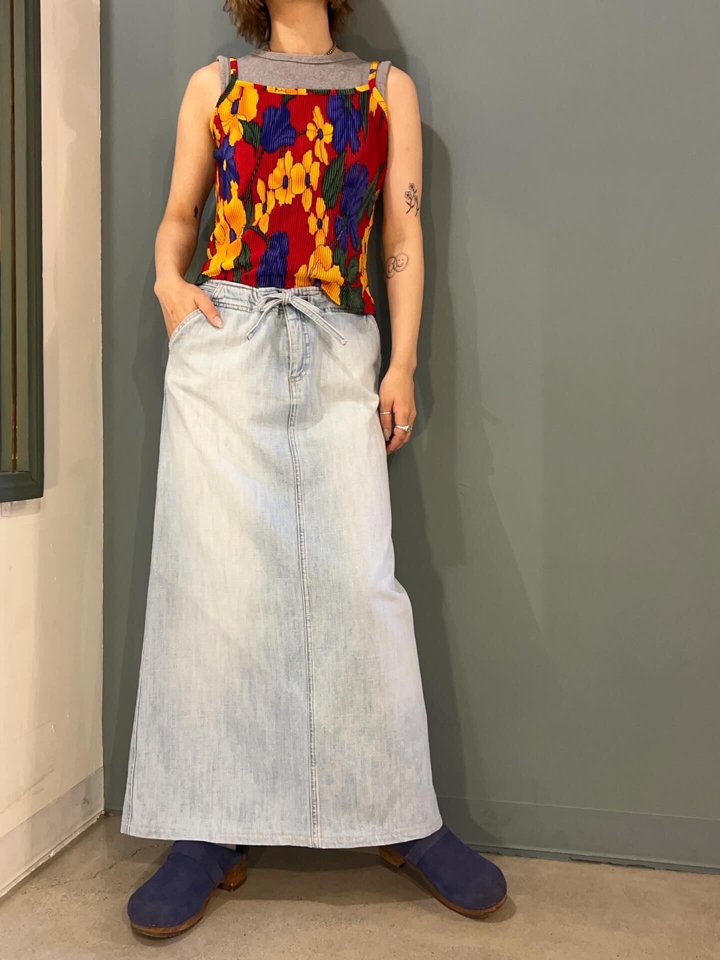 denim long skirt