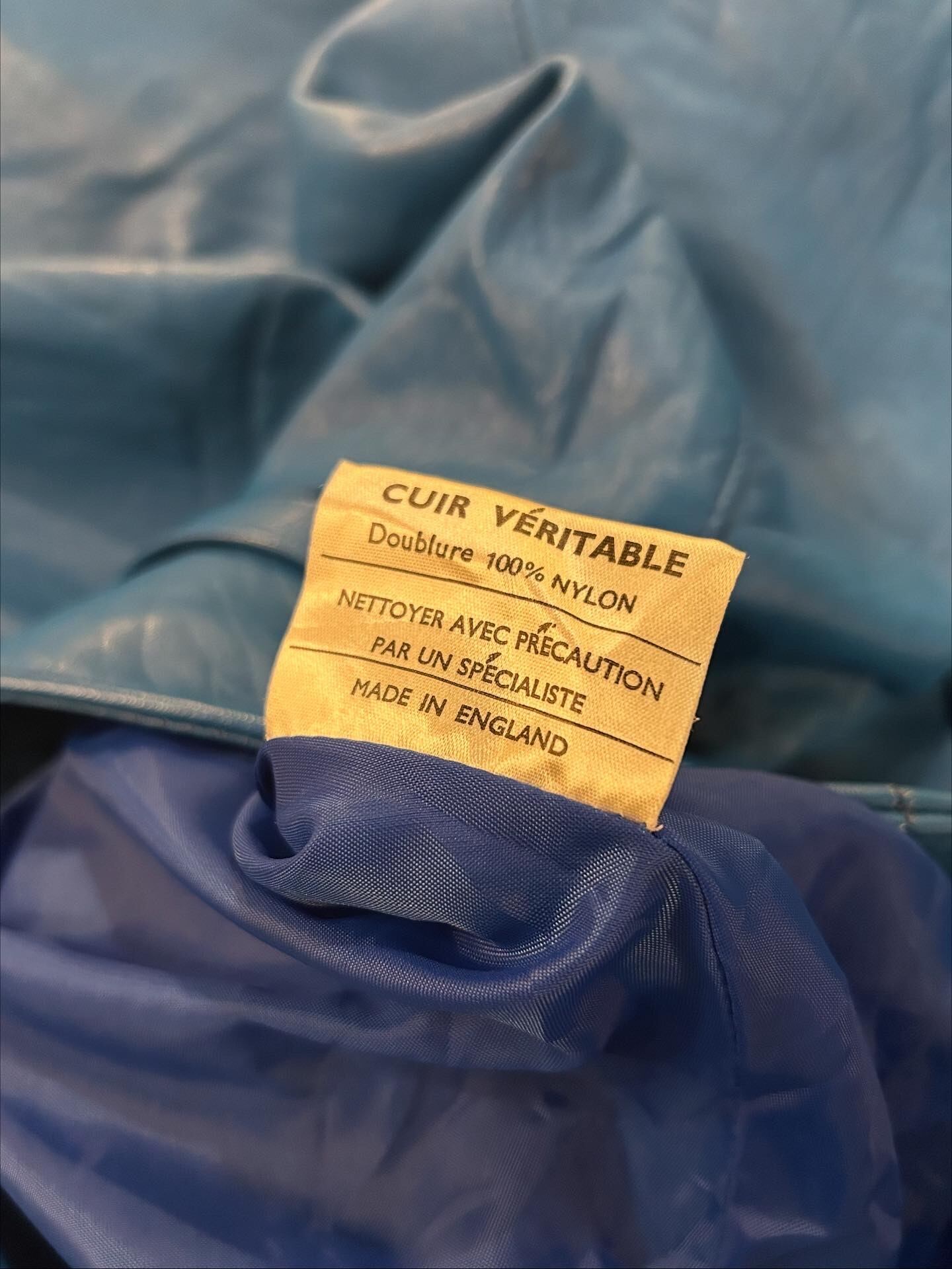 ○blue leather jacket made in England